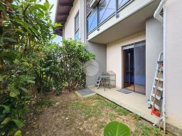 TORRAZZA: Alloggio al piano terra in piccola palazzina costruita nell'anno 2001 con riscaldamento autonomo e basse spese di gestione. L'ingresso è tramite portoncino blindato dal quale si accede al disimpegno e alla cucina abitabile con sfogo esterno sul balcone. La zona notte dispone di una cameretta con secondo balcone, una camera matrimoniale con sfogo esterno su piccolo giardino privato e un bagno dotato di vasca/doccia. Tutti gli infissi sono in legno con doppi vetri, zanzariere e tapparelle. Il riscaldamento è alimentato a metano tramite radiatori con caldaia a condensazione. Inoltre l'appartamento dispone di antifurto. Completano l'unità immobiliare una cantina di 26 mq. piastrellata e dotata di punto acqua; un comodo box e un posto auto privato.