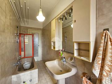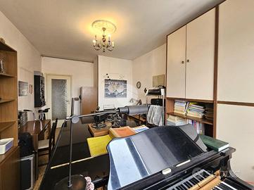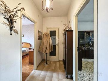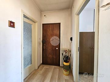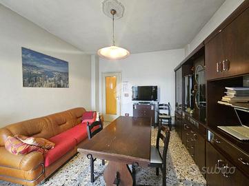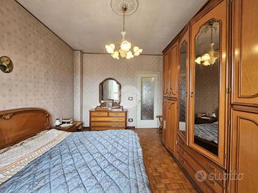 TORRAZZA: In zona centrale, comoda ai servizi; Alloggio al quinto piano in palazzo dotato di ascensore. Ingresso su ampio disimpegno dal quale si accede al soggiorno con cucinotto e sfogo esterno sul balcone. La zona notte è costituita da due camere da letto spaziose con secondo balcone e vista panoramica. Il bagno dispone di finestra e vasca. La metratura interna viene completata da un comodo ripostiglio. Il riscaldamento è alimentato a metano tramite radiatori, centralizzato con termovalvole e basse spese di gestione annue. I materiali risalgono all'epoca di costruzione, da ristrutturare. La buona disposizone degli spazi interni consente ulteriori personalizzazioni. Completa l'unità immobiliare una cantina al piano interrato. Soluzione ideale anche ad uso investimento!
