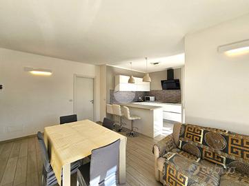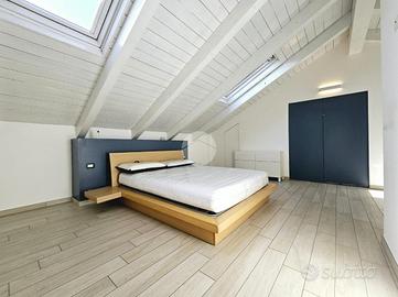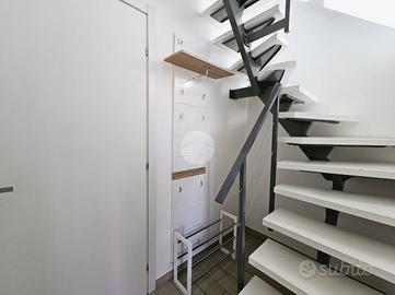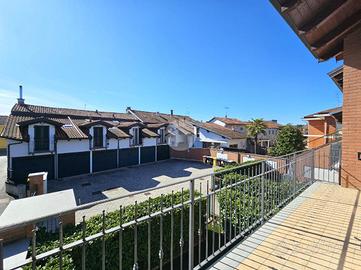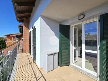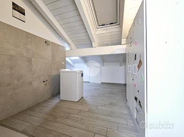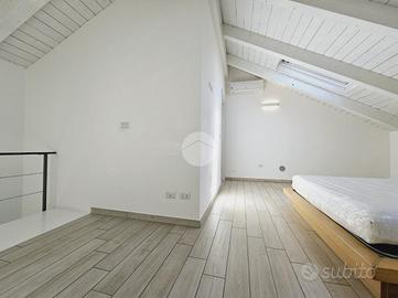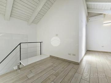 TORRAZZA: Alloggio disposto su due livelli in piccola palazzina di recente costruzione. Ingresso tramite portoncino blindato su ampia zona giorno con cucina a vista e sfogo esterno sul terrazzino e balcone. Dal disimpegno si accede alla camera da letto con secondo balcone e al bagno dotato di doccia e finestra. Tramite una scala interna si raggiunge il piano superiore, mansardato, costituito da un'ampia stanza luminosa con ripostigli a muro e un secondo locale adibito a servizio, lavanderia e deposito. Tutti gli infissi sono in pvc con doppi vetri, zanzariere e persiane. Il riscaldamento dell'abitazione è centralizzato a pavimento, alimentato a metano con termostato autonomo per regolare la temperatura interna. Inoltre l'immobile dispone di climatizzatore caldo/freddo. Completano l'unità immobiliare una cantina al piano interrato e un box auto singolo. La proprietà è caratterizzata da ambienti interni spaziosi e luminosi. La buona distribuzione degli spazi presenti permette ulteriori personalizzazioni in base alle proprie esigenze personali e famigliari. Ottimo stato di conservazione di tutte le finiture e materiali interni ed esterni!