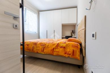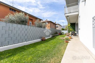 TORRE BOLDONE: In recente palazzina del 2020, composta da sole 6 unità abitative, proponiamo luminoso trilocale in classe energetica A3, caratterizzato dalle più moderne tecnologie per il risparmio energetico e rifinito con materiali extracapitolato. Internamente, dall'ingresso accediamo alla luminosa zona giorno con cucina a vista, impreziosita dall'importante vetrata che concede sfogo verso l'esterno. Troviamo poi una comoda lavanderia/ripostiglio finestrata, il disimpegno per la zona notte, bagno sempre finestrato e completo di doccia, due camere da letto delle quali una matrimoniale, ed infine un locale studio, che potrebbe essere trasformato in un ulteriore bagno, oppure in locale deposito o cabina armadio. Il vero plus dell'appartamento è senza dubbio il patio esterno coperto e pavimentato, ideale per pranzi e cene all'aperto, arricchito da giardino piantumato che avvolge i lati dell'abitazione. Proprio dal giardino, è stata creata una scala privata che conduce direttamente all'ampio box di 35 mq, dov'è situato anche il locale termico autonomo con pompa di calore. Riscaldamento a pavimento (parquet in rovere), ventilazione meccanica controllata, serramenti a basso emissivo in pvc, cappotto termico, predisposizione aria condizionata e possibilità di gestione domotica. L'edificio dispone di impianto fotovoltaico con accumulo per acqua calda sanitaria di 150 litri per ogni appartamento. L'appartamento viene venduto completo di arredo cucina, divano, armadiatura delle camere e possibilità di scelta di ulteriori mobili su richiesta. Possibilità di acquistare un ulteriore box singolo a 25.000 euro. Ideale per chi cerca un'abitazione moderna, efficiente e pronta da abitare.