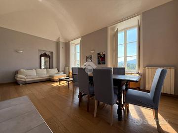 Nel cuore del comune di Torre Canavese, appartamento situato in una palazzina storica di pregio, denominata 'Palazzo Concaris', residenza storica, risalente intorno al 1850, restaurata con particolare attenzione ai dettagli. Questa abitazione è dotata di ogni comfort, tra cui il comodo e pratico ascensore. L'immobile, di circa cento metri quadri, si trova al piano medio ed è stato ristrutturato nel 2004, mantenendo il fascino dell'epoca. Gli ambienti sono caratterizzati da finiture eleganti e una luminosità naturale che pervade ogni stanza. La zona giorno è ampia e accogliente, ideale per momenti di convivialità in cui ogni dettaglio risulta evidenziato e ben curato. Completano la proprietà due camere da letto e doppi servizi, di cui uno con doccia ed uno con vasca offrendo comfort e funzionalità. L'appartamento gode di una vista panoramica che si estende sul parco di circa ventimila metri quadri, un'oasi di tranquillità e verde. Inclusi nella proprietà, due posti auto riservati. Una soluzione abitativa che coniuga storia, eleganza e modernità in un contesto ideale per chi è alla ricerca di un ambiente dal fascino unico e coinvolgente.