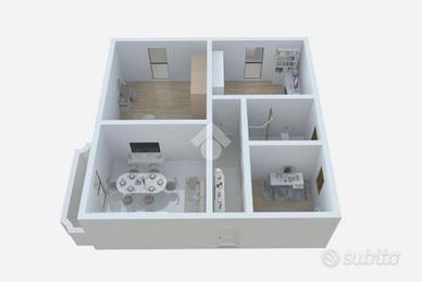 La caratteristica che contraddistingue questo immobile è l'ampiezza degli spazi e l'ottimale distruzione. La cucina, abitabile, con ampio balcone che la rende luminosa ed arieggiata, tre camere da letto con bagno padronale, divise da un comodo corridoio che si estende per tutti gli ambienti.