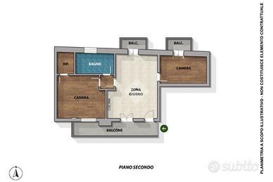 L'appartamento si trova a pochi passi dal centro, comodamente raggiungibile a piedi con una breve passeggiata. Siamo in zona Appiotti, con la fermata dei mezzi pubblici praticamente sotto casa, un plus importante per chi desidera muoversi senza utilizzare l'auto. L'alloggio è collocato al secondo ed ultimo piano di una palazzina del 2006 ed è valorizzato da una doppia esposizione nord-sud: la zona giorno affaccia a sud, garantendo un'ottima luminosità durante tutta la giornata, ulteriormente esaltata dalla posizione all'ultimo piano. Un elemento raro sul mercato locale è la totale assenza di barriere architettoniche: l'ingresso allo stabile e l'ascensore sono accessibili senza gradini e conducono comodamente direttamente al piano abitativo. L'ingresso avviene dal balcone su cui affaccia la zona giorno, che si sviluppa in un ampio ambiente unico cucina e living, ben organizzato e funzionale, con spazi dedicati alla zona pranzo e al relax. La distribuzione interna è razionale e ben studiata: il bagno è ampio e finestrato, dotato di vasca. La camera matrimoniale è completata da una comoda cabina armadio, soluzione pratica che ottimizza gli spazi. Una seconda cameretta, ideale come stanza per un figlio, studio o camera per gli ospiti, completa il piano abitativo. Entrambe le camere da letto sono rifinite con pavimentazione in parquet, dettaglio che dona calore agli ambienti. L'appartamento dispone complessivamente di tre balconi: uno a servizio della zona giorno con affaccio a sud e due, sul lato opposto, a servizio delle camere. Tutti i soffitti sono rifiniti in legno con perline e travetti a vista, elemento che caratterizza e dona calore all'immobile. Il riscaldamento è autonomo con caldaia a metano, utilizzata anche per la produzione dell'acqua calda sanitaria. I serramenti in legno con doppi vetri sono in ottime condizioni. Completa la proprietà un comodo posto auto nel cortile condominiale, elemento che ne accresce ulteriormente la praticità. Un alloggio