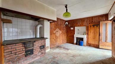 L'ingresso apre su un pratico salottino, reso accogliente dalla presenza di una cucina economica d'epoca in muratura, perfettamente funzionante e principale fonte di calore della casa, che dona carattere e riscalda gli ambienti. Da qui si accede a una seconda stanza utilizzata come disimpegno, che permette di raggiungere il bagno e la scala interna che conduce alla prima camera da letto al piano superiore.