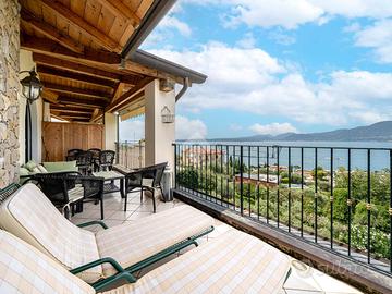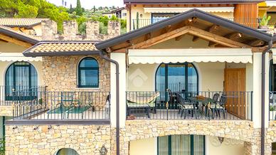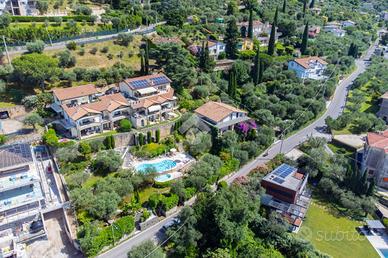 In elegante residence con piscina, composto da poche unità e situato in una delle zone più prestigiose della prima collina di Torri del Benaco, trilocale al primo piano con ampio terrazzo e vista mozzafiato sul lago.