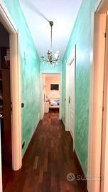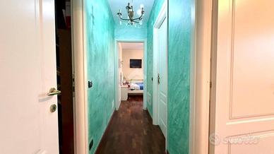 La zona notte è separata dalla zona giorno tramite un elegante corridoio luminoso che conduce a due camere da letto matrimoniali, spaziose e ben distribuite.