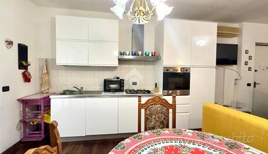 L'appartamento si apre su un ampio soggiorno con cucina a vista, creando un luminoso open-space che garantisce una buona vivibilità e una perfetta dinamicità degli spazi, fondendo i due ambienti in uno unico comodo e funzionale, per vivere i momenti con più unicità e funzionalità.