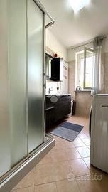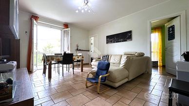 La zona giorno si apre su un ampio terrazzo, perfetto per momenti di relax all'aperto. L'appartamento è dotato di aria condizionata e riscaldamento autonomo, assicurando comfort in ogni stagione. Un box auto privato e l'ascensore completano l'offerta, rendendo la vita quotidiana più agevole.