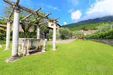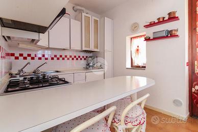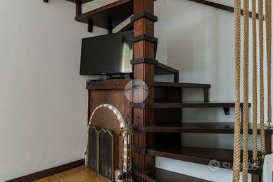 La soluzione si trova al piano terra circondato su due lati da un giardino privato, e si sviluppa su due livelli, a fare da ingresso vi è la zona giorno con camino, collegata ad una cucina abitabile con sfogo indipendente sul giardino.