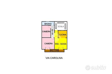 Le due camere da letto, entrambe spaziose e ben arredabili, sono perfette per garantire il massimo comfort e tranquillità. Inoltre, l'appartamento è dotato di un balcone che si affaccia direttamente sulla vivace e storica Via Carolina, con una vista che abbraccia non solo la strada, ma anche il mare che si estende all'orizzonte.
