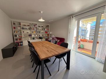 -Ampio e luminoso soggiorno con angolo cottura in open space esposto ad Est con accesso sul balcone;