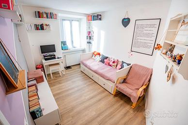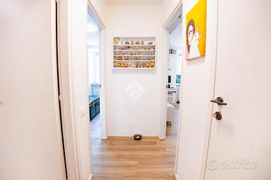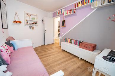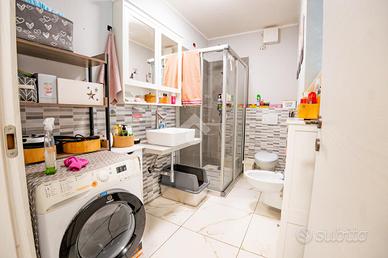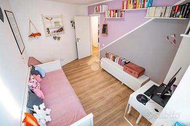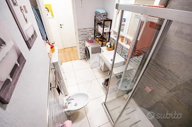 La zona notte è composta da due camere da letto di generose metrature: ampia singola e matrimoniale. Il bagno è dotato di box doccia e di ventilazione forzata.