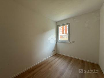 L'appartamento è composto da tre locali, tra cui due camere da letto e un soggiorno con cucina in open-space. E' presente un ampio e luminoso bagno finestrato.