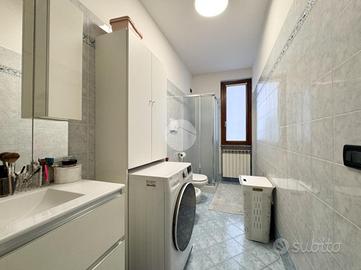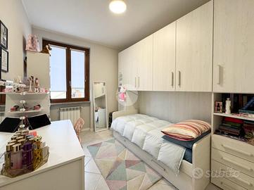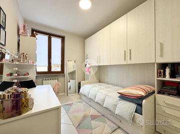La zona giorno open space, luminosa e funzionale, ha accesso al balcone, mentre un comodo disimpegno conduce alla zona notte composta da una camera matrimoniale, una cameretta e un bagno finestrato con box doccia.