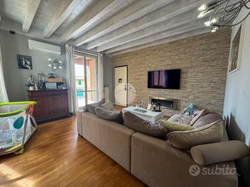 APPARTAMENTO TRILOCALE AL PIANO PRIMO CON BALCONE DOTATO DI BOX E POSTO AUTO In tranquillo e curato contesto di corte edificato nei primi anni 2000, proponiamo in vendita appartamento trilocale con travi a vista posto al primo piano, ideale per chi è alla ricerca di una soluzione funzionale, ben distribuita e con costi di gestione contenuti. L'immobile si distingue per la buona luminosità degli ambienti ed è composto da accogliente soggiorno con accesso diretto a balcone vivibile, perfetto per pranzi all'aperto o momenti di relax, cucina separata, pratica e ben organizzata, disimpegno, due camere da letto di generose dimensioni, bagno finestrato e comoda lavanderia. Si precisa che il bagno è stato rifatto nel 2020, nel 2025 è stata cambiata la caldaia ed istallato un nuovo condizionatore. L'appartamento è in stato di ottima manutenzione ed è inoltre dotato di impianto di allarme e verrà venduto con la cucina e la cabina armadio. La disposizione interna garantisce comfort e vivibilità sia per famiglie che per giovani coppie, con spazi ben sfruttati e facilmente arredabili. Completano la proprietà un box auto singolo e un posto auto scoperto, elementi sempre più richiesti e fondamentali per la comodità quotidiana. Spese condominiali contenute, pari a circa € 400 annui. Soluzione ideale per chi desidera un'abitazione pronta da vivere, inserita in un contesto tranquillo ma comunque comodo ai principali servizi. UBICAZIONE E CONTESTO L'immobile si trova a Trenzano, un comune in provincia di Brescia, Lombardia, con circa 5500 abitanti. Negli ultimi anni, Trenzano ha visto un notevole sviluppo demografico e commerciale, favorito dalla vicinanza alla tangenziale A35 (BreBeMi), che collega Brescia, Bergamo e Milano. Confina con l'Autodromo di Franciacorta e il lago di Iseo è raggiungibile in soli 20 minuti di auto. Il comune offre servizi essenziali come ufficio postale, scuole e una varietà di negozi, ristoranti e bar.