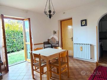 TREVI NEL LAZIO - In via delle Stelle Alpine, località Altipiani di Arcinazzo, proponiamo in vendita e in esclusiva appartamento piano terra con giardino privato e ampio garage di proprietà. L'appartamento, facente parte di una piccola palazzina di soli otto condomini senza costi condominiali ordinari, è composto da un soggiorno con camino e accesso diretto al giardino, un cucinotto con finestra, una camera matrimoniale, una cameretta con balcone e un bagno finestrato con doccia. L'appartamento è termoautonomo con caldaia e bombolone GPL privato e si presenta luminoso, asciutto e ben tenuto. Si vende completo di arredi.