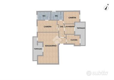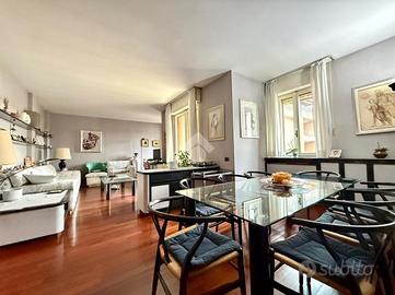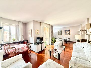 TREVIGLIO ZONA CENTRALE: A dieci minuti dal centro storico cittadino, posto in una via residenziale molto tranquilla a fondo chiuso, appartamento di 145 mq commerciali in tripla esposizione con ampio terrazzo, doppi servizi, lavanderia attrezzata, cucina abitabile, cantina e due box singoli inclusi nel prezzo. Vista l'ampia dimensione dell'immobile è possibile ricavare una terza camera da letto. DISPOSIZIONE INTERNA: Ingresso, ampio soggiorno con accesso sul terrazzo esposto ad ovest, cucina abitabile con accesso sul secondo terrazzo esposto ad est, disimpegno, lavanderia attrezzata, bagno, ampia camera, camera matrimoniale con bagno padronale finestrato al suo interno, cantina di 5 mq e due box singoli posti al piano interrato. INFORMAZIONI AGGIUNTIVE: Riscaldamento autonomo (caldaia a condensazione) con spese condominiali annue pari ad euro 1.950 circa, ascensore condominiale, cancello carrale elettrico, serramenti in legno con doppi vetri, giardino condominiale, zanzariere, tende da sole elettriche, porta blindata e parquet nella zona giorno. Appartamento dalle grandi potenzialità posto in una zona tranquilla ma nello stesso tempo comoda al centro città e alla stazione Fs Centrale.
