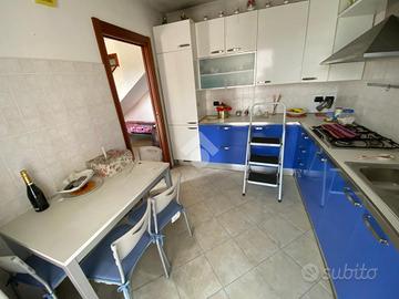 L'immobile, posto al primo e secondo ed ultimo piano, si compone internamente di ingresso che da sull'ampia zona giorno composta da soggiorno eucina abitabile, entrambi gli ambienti sono serviti da un comodo balcone. Al piano troviamo anche un servizio finestrato dotato di box doccia e la scala che conduce al piano superiore.