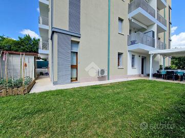 Treviso, proponiamo appartamento trilocale al piano terra con giardino privato di 116 mq in palazzina edificata nel 2007. L'immobile è composto da ingresso, zona giorno con angolo cottura, camera matrimoniale, camera singola e bagno finestrato con vasca. Al piano seminterrato spazioso garage di 27 mq. Pavimentazione in legno in zona giorno e in zona notte. Infissi in legno vetrocamera con tapparelle. Completo di aria condizionata. Sito in zona residenziale, a 500 metri dalla fermata dell'autobus, a 800 metri dal supermercato e a 5 minuti dal centro città.