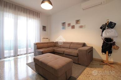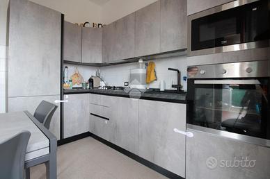 L'immobile si compone di ingresso con pratico ripostiglio, ampio soggiorno e cucina abitabile, entrambi con affaccio sul terrazzo coperto. Il disimpegno conduce alla zona notte composta due camere matrimoniali, di cui una con sfogo sul secondo balcone, e bagno finestrato con box doccia.