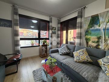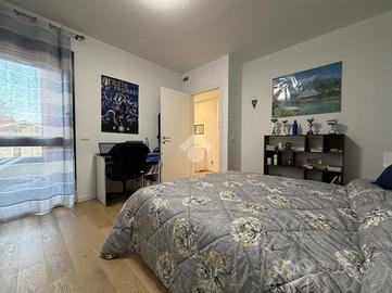 Posta al primo piano servito da ascensore, l'abitazione vanta di ambienti ampi e di un'ottima distribuzione degli spazi interni. La zona giorno è composta da una spaziosa cucina abitabile e da un luminoso soggiorno, entrambi con sfogo diretto sul terrazzino coperto. Il disimpegno conduce alla zona notte, suddivisa in due camere matrimoniali e doppi servizi, quali bagno finestrato con box doccia e secondo bagno cieco con vasca.