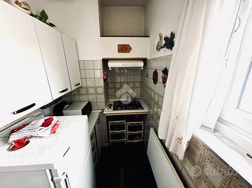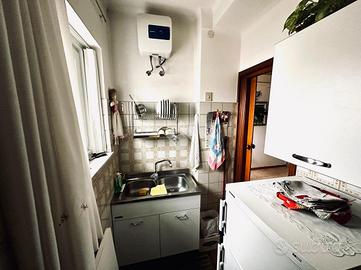 Composto da un funzionale andito d'ingresso, un soggiorno con cucinino, un comodo balcone, una cameretta, un pratico ripostiglio, una camera matrimoniale, un bagno completo con accesso ad una veranda/lavanderia.