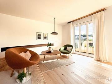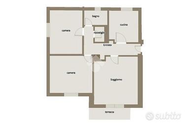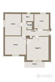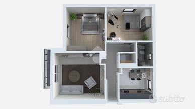 Dal corridoio d'ingresso si può accedere ad un ampio soggiorno con accesso al terrazzo di 5 mq, comoda cucina abitabile, una camera matrimoniale di15 mq ed una spaziosa camera singola di 13 mq, ripostiglio e bagno completo finestrato.