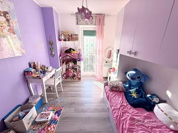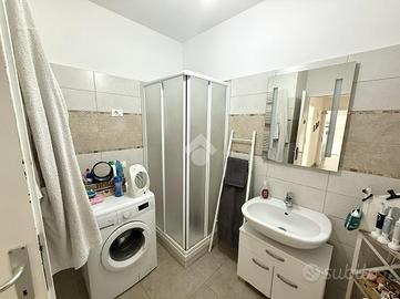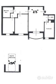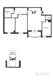 Ingresso che si apre sull'ampia zona giorno con accesso ad un poggiolo di circa 5 mq, cucina semiabitabile, comodo ripostiglio, camera matrimoniale, camera doppia di 11 mq e bagno con la doccia.