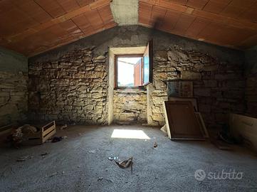 L'appartamento, da frazionarsi, si trova in una soluzione indipendente e si sviluppa su due livelli abitativi composti al 1° piano da cucina abitabile, ampio soggiorno, stanza, bagno e ripostiglio; al 2° piano possibilità di creare altre stanze secondo le proprie esigenze.