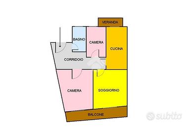 Internamente l'alloggio si compone di un ingresso, un luminoso soggiorno con accesso ad un balcone di generose dimensioni, una camera matrimoniale, una cameretta, una cucina abitabile con veranda e un bagno completo e finestrato.