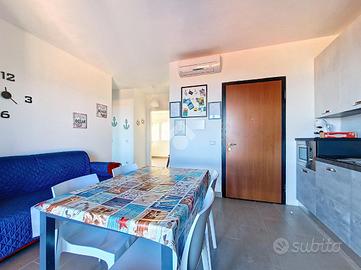 L'abitazione, curata nella distribuzione degli spazi, si compone di un'accogliente zona giorno con angolo cottura e area pranzo-soggiorno, due camere da letto confortevoli, bagno e disimpegno.