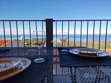 Dalla spaziosa veranda coperta, vero cuore della casa, si apre una vista spettacolare sul mare e sull'Isola Rossa, che regala ogni giorno scenari sempre nuovi e tramonti indimenticabili.
