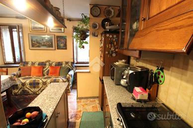 Posizionato in zona precollinare, immersa nel verde, ma al contemplo comoda a tutti i servizi, grazioso alloggio ubicato in contesto privo di spese di gestione. La soluzione si sviluppa su due livelli abitativi e grazie alla disposizione interna permette una totale personalizzazione. L'ingresso, tramite il portoncino blindato è living sulla spaziosa sala con angolo cottura a vista. Il piano superiore, accessibile tramite la comoda scala interna, accoglie le due camere da letto di generose dimensioni. Il bagno, finestrato e dotato di pratico box doccia, ultima la zona notte. La gestione del riscaldamento è autonoma, ideale per regolare la temperatura desiderata in base alle proprie necessità. La cantina al piano interrato completa la soluzione. Ultima la proprietà il box auto doppio con annesso cortile ad euro 20.000,00.