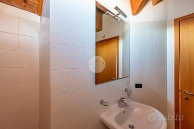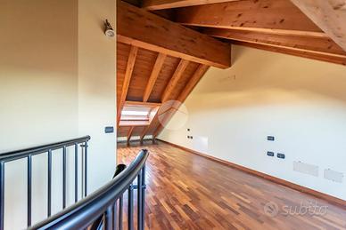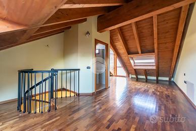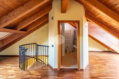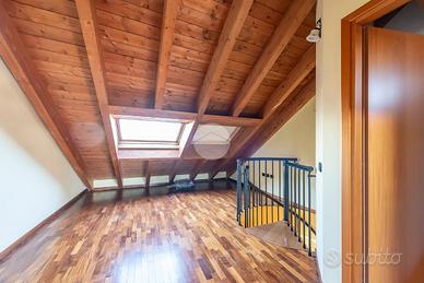 Una scala interna collega direttamente alla mansarda, un ambiente versatile e ben rifinito che ospita la seconda camera rivestita interamente in parquet con ulteriore bagno completo di piatto doccia.