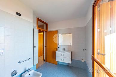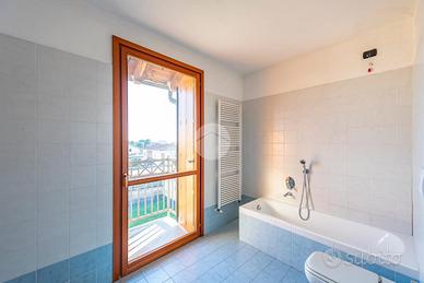 Un pratico disimpegno accompagna alla camera matrimoniale, anch'essa dotata di balcone, e al bagno principale, funzionale e attrezzato con vasca.