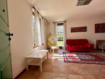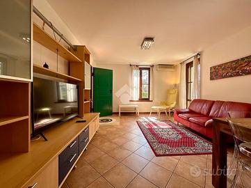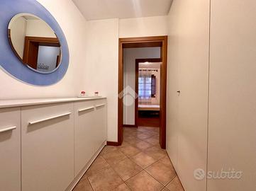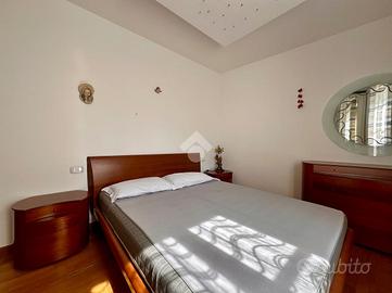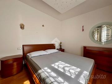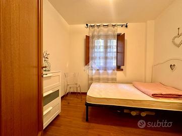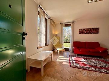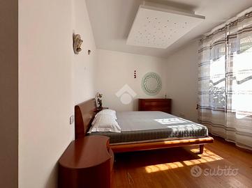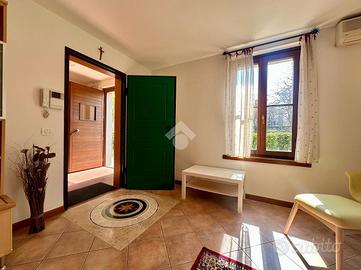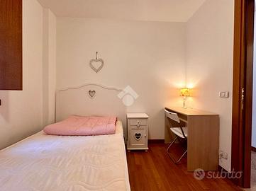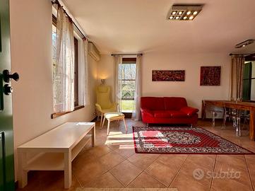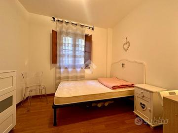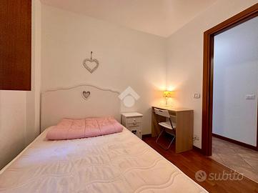 Un pratico disimpegno con armadio su misura divide la zona giorno da quella notte, dove troviamo la camera singola e, proseguendo lungo il corridoio, il bagno finestrato con vasca. A concludere la soluzione una camera matrimoniale con affaccio su giardino di pertinenza arredata con pregiati mobili in legno di ciliegio.