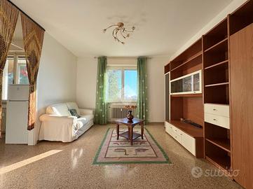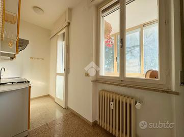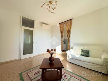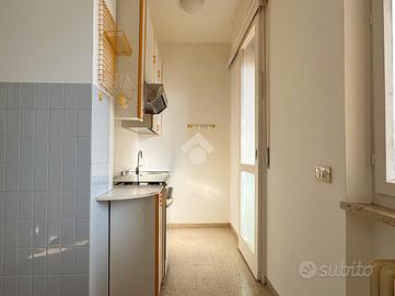 Il luminoso soggiorno conduce alla cucina separata e dotata di veranda con affaccio sull'intimo interno nel quale si trova il complesso condominiale.