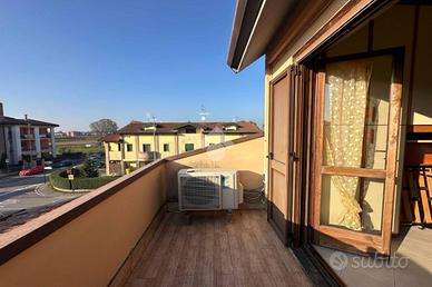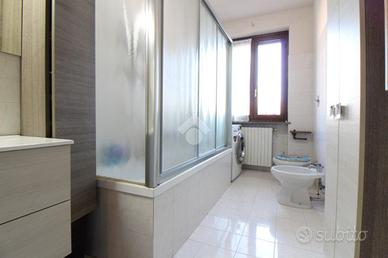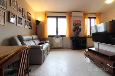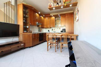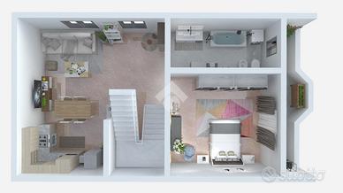 Abitazione con ingresso indipendente e giardino privato di 45 mq. una scala interna porta al primo piano dove troviamo il soggiorno con la cucina a vista ed il bagno con vasca. Camera matrimoniale con accesso diretto al balcone. Al piano superiore vi è la mansarda ideale come seconda camera con sfogo sul balcone. Box doppio al piano interrato.