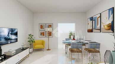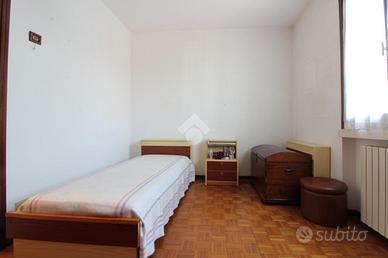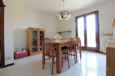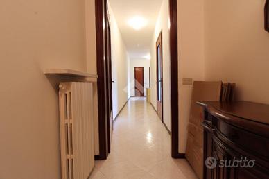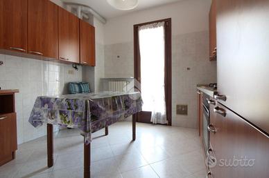 Appartamento di 95 mq con ampi spazi abitativi, composto da ingresso, soggiorno e cucina separati con accesso al balcone. Ampio disimpegno con ripostiglio, due camere da letto rifinite con parquet e bagno con vasca e doccia. Completo di zanzariere e possibilità arredamento. Al piano terra troviamo la cantina ed il box. Libero subito