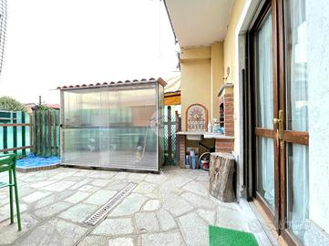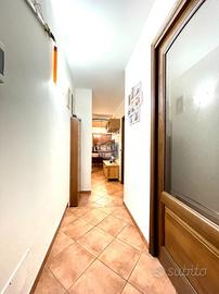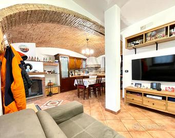 L'ingresso conduce alla zona giorno con cucina living, valorizzata dal camino a legna, il disimpegno centrale, il bagno con la vasca, lo studio, e la camera da letto matrimoniale. La posizione strategica consente di godere della serenità della zona, pur rimanendo ben collegati ai principali servizi. Completano la proprietà il cortile privato ed il posto auto.