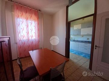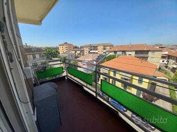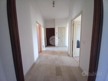 L'alloggio, posto al quarto ed ultimo piano con ascensore, è composto da un ampio ingresso su disimpegno che conduce alla zona giorno dove troviamo in cucinino col tinello con accesso al primo balcone e un soggiorno con portafinestra che conduce ad un secondo balcone.