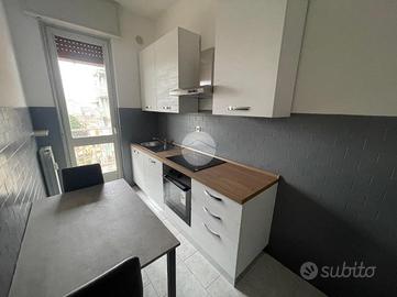 L'ingresso si apre sul disimpegno che conduce al soggiorno provvisto di balcone, una cucina semi abitabile con un secondo balcone, una camera da letto matrimoniale e un bagno con doccia e accesso ad un terzo balcone.