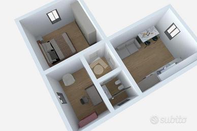 L'appartamento è composto da una spaziosa cucina, una camera da letto matrimoniale e un ulteriore vano che può essere utilizzato come soggiorno o studio. Il bagno, dotato di finestra, è un ulteriore punto di forza di questa proposta. Inoltre, viene venduto arredato, pronto per essere abitato sin da subito.