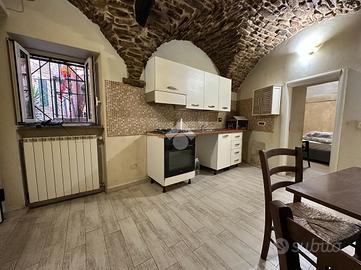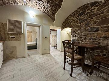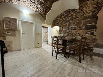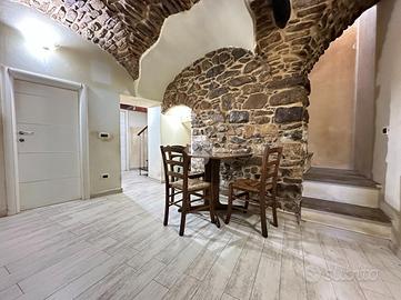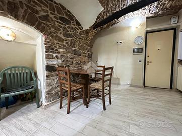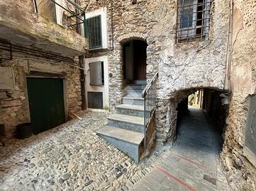 La proprietà è situata a pochi metri dalla Piazza della Chiesa e ha ingresso indipendente. La peculiarità di questo appartamento è la sua ristrutturazione, 14 anni fa, che ha enfatizzato gli elementi architettonici tipici dei centri storici liguri, in particolare con il recupero e ripristino delle volte e dei muri in pietra a vista. L'ingresso è nella zona giorno da cui si accede alla camera da letto e al bagno. Due sono gli spazi ulteriori presenti nell'appartamento: un soppalco, sfruttabile per ulteriori posti letto o come studio, e un ampio ripostiglio, accessibile sempre da scala interna. L'appartamento è dotato di riscaldamento autonomo ed è privo di spese condominiali.