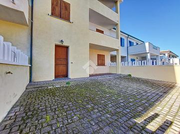 VALLEDORIA - LA CIACCIA - VIA DEI NAVIGATORI : All'interno di un piccolo complesso condominiale. La zona di via dei navigatori è caraterizzata per lo più da piccoli condomini, adibiti a case vacanza. La caletta più vicina dista soli 100 metri dal fabbricato, soluzione ideale per gli amanti della pesca e della natura. L'immobile che proponiamo tipologia Trilocale si trova al piano terra del fabbricato,realizzato nei primi anni 2000, in buone condizioni e ideale per una comoda e rilassante vacanza. All'appartamento accediamo tramite l'ampio cortile di circa 30 mq, uno spazio privato perfetto per godersi il tempo all'aperto e per pranzi o cene estive in famiglia.Dal cortile accediamo all'interno della proprietà sviluppata per oltre 70 mq e composta da un luminoso soggiorno, due camere da letto e un bagno finestrato. Nell'ampio cortile privato di 30 mq, è possibile parcheggiare la propria auto, garantendo la massima praticità. La posizione centrale e tranquilla rende questa proprietà la scelta ideale per chi cerca una casa vacanze a pochi passi dalla spiaggia e da tutti i servizi principali.