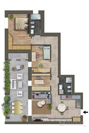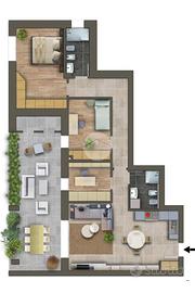 Completamento del nuovo comparto residenziale posto nel cuore del Paese con un condominio composto da 13 unità che verranno costruite con grande attenzione per la qualità abitativa e per i materiali di finitura, nonché per il contenimento energetico. L'immobile sito al secondo piano sarà così composto: ingresso su soggiorno con angolo cottura, disimpegno zona notte, ripostiglio, due camere da letto, uno studio, due bagni ed un terrazzo di 27 mq. Possibilità di acquistare autorimesse (25.000,00 €) e posti auto privati scoperti (5.000,00 €). La Società costruttrice in collaborazione con progettisti e tecnici specializzati darà grande rilievo alle tecnologie per il contenimento energetico (involucro della casa, infissi di grande qualità, impianto di riscaldamento radiante in pompa di calore, impianto fotovoltaico e termico-solare). Per quanto riguarda invece la parte estetica del fabbricato uno studio di Architettura specializzato seguirà cromie delle facciate e illuminazioni. Fissa un appuntamento. Chiama in ufficio oppure via mail bo2c4@tecnorete.it