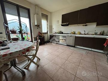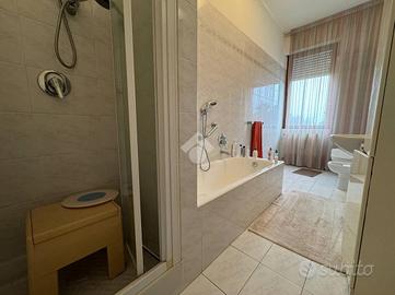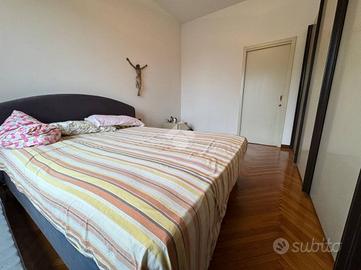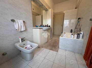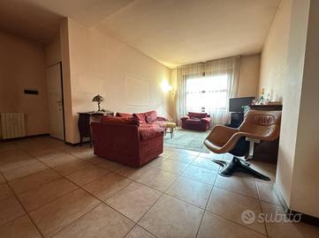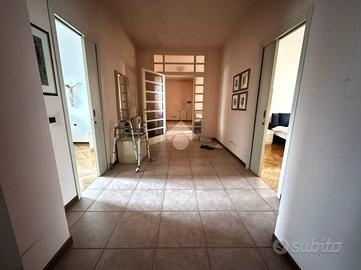 In posizione centrale e a pochi passi da tutti i principali servizi, tra cui scuole, ospedale, fermata dell'autobus, supermercati e negozi, proponiamo un elegante appartamento situato al secondo ed ultimo piano di un contesto residenziale tranquillo. L'immobile si apre su un ingresso che conduce a un ampio e luminoso soggiorno, una cucina abitabile con balcone, una comoda lavanderia, uno spazioso disimpegno, due camere matrimoniali e un bagno finestrato. Al terzo piano si trova un esclusivo lastrico solare di 148 mq, completamente recintato e attrezzato con gazebo, acqua e luce, perfetto per vivere momenti di relax con vista sui giardini. Al piano seminterrato completano la proprietà una pratica cantina e un box auto, entrambi comodamente raggiungibili grazie all'ascensore che collega anche i piani inferiori. L'appartamento si presenta in ottimo stato, gode di doppia esposizione e offre ambienti particolarmente luminosi, rappresentando una soluzione abitativa completa e di grande interesse per chi cerca comfort, spazio e una posizione strategica.
