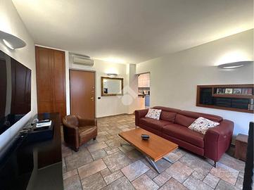 L'appartamento al primo livello è composto da un ampio soggiorno, una cucina separata e abitabile dotata di porta-finestra con accesso al balcone, una camera matrimoniale con bagno privato finestrato con doccia, una cameretta e un secondo bagno finestrato con vasca.