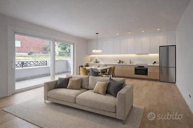 In una nuova residenza ad alta efficienza energetica nel cuore di Varedo, in posizione strategica a pochi passi dalla stazione e dai principali servizi, proponiamo un elegante trilocale al piano terra con terrazzo.