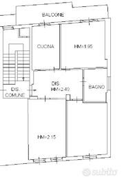 L'immobile è così disposto: ingresso, soggiorno, cucina abitabile con balcone e dal quale si ha accesso anche da una delle due camere da letto e bagno finestrato.